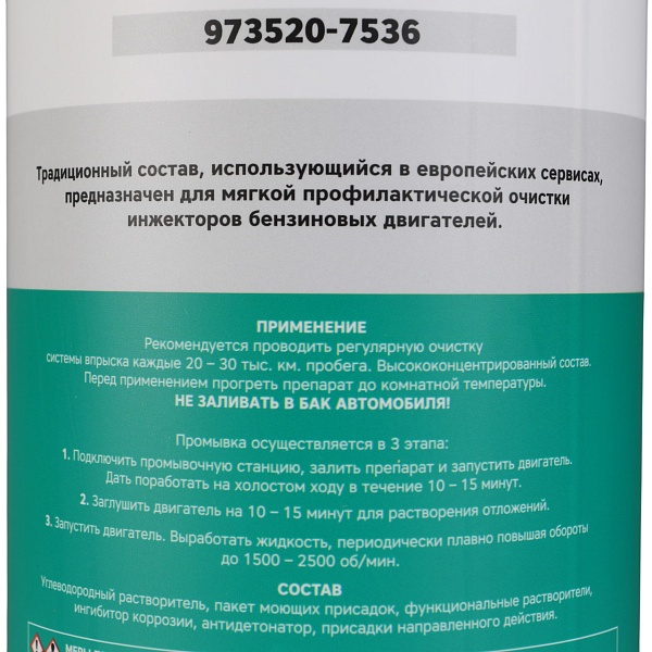 Удобство использования: Жидкость для промывки инжекторов поставляется в удобном для хранения и использования баллончике объёмом 1 литр. Перед применением рекомендуется прогреть средство до комнатной температуры для достижения максимальной эффективности.