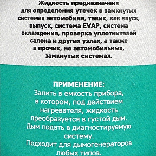 Индикаторная жидкость для поиска утечек создает плотный видимый дым