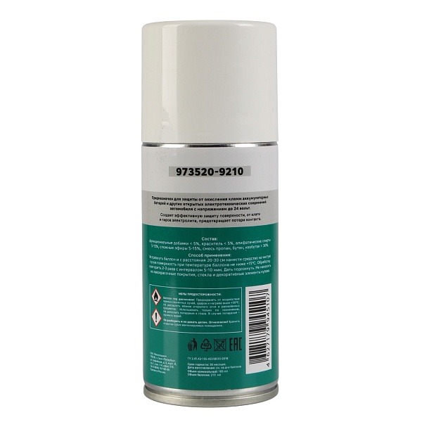 Антикоррозийный спрей для АКБ образует плотное покрытие, устойчивое к влаге, кислотам и перепадам температур.