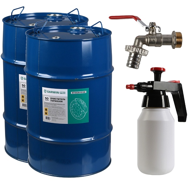 Промонабор Очиститель тормозов 50 л 2 шт + Кран боч + Распылитель, GARWIN PRO, 973520-0088