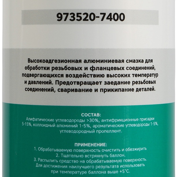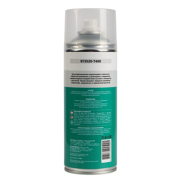Алюминиевая смазка GARWIN PRO 973520-7400 — это высокотемпературная смазка с алюминиевым наполнителем в аэрозольном баллоне 520 мл. Используется для защиты резьбовых соединений, подшипников и автомобильных деталей, работающих в условиях экстремальных температур и нагрузок.