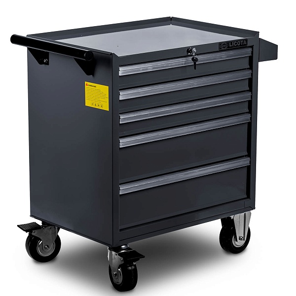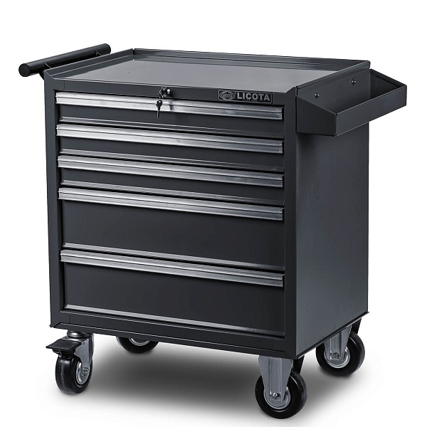 Тележка инструментальная с карманом, 5 полок, серая, Licota, AWX-2602G-N-R