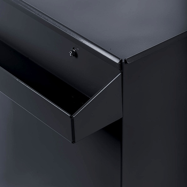 Изготовлена из цельного металлического листа толщиной 1,2 мм. Ящики из стали толщиной 1 мм способны выдержать нагрузку до 70 кг.