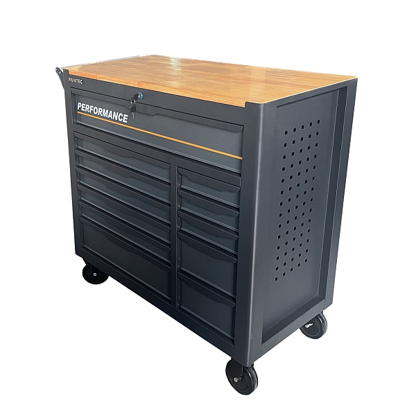 Корпус изготовлен из холоднокатанной стали, что придаёт конструкции дополнительную жёсткость и долговечность. Боковые стенки имеют перфорацию с обеих сторон для крепления крючков и аксессуаров, позволяя удобно организовать рабочее пространство. Тележка установлена на увеличенные колёса из износостойкого полипропилена, что облегчает её перемещение даже при полной загрузке. В каждом ящике предусмотрены коврики из EVA-материала, защищающие инструмент от скольжения и повреждений.