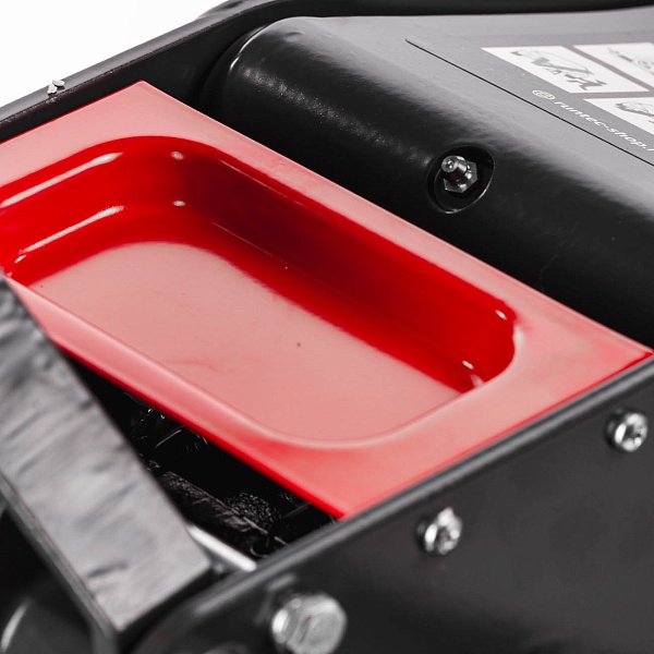 Рельефная рукоятка не скользит в руках, обеспечивая надежный захват. Кроме того, она поможет избежать повреждений при случайном открытии двери автомобиля. Предусмотрена ниша для хранения крепежа. Поворотные колеса облегчают перевозку домкрата. Резиновый упор подъемной лапы повышает безопасность в процессе эксплуатации домкрата.