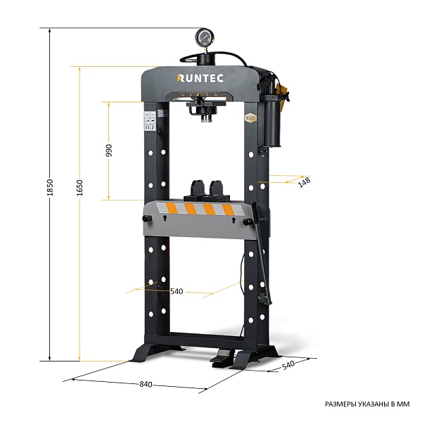 Пресс пневмогидравлический профессиональный, 30 т, RUNTEC, RT-SP30A