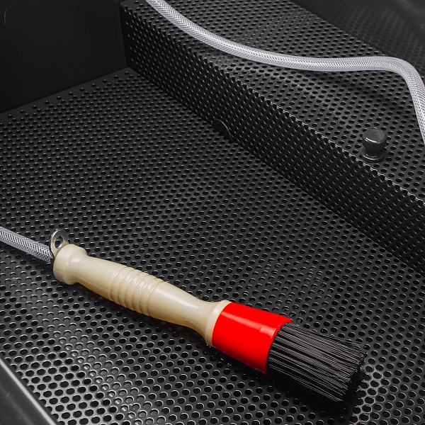Крышка мойки для деталей оборудована пневматическим подъемным механизмом для более плавного открывания и закрывания.