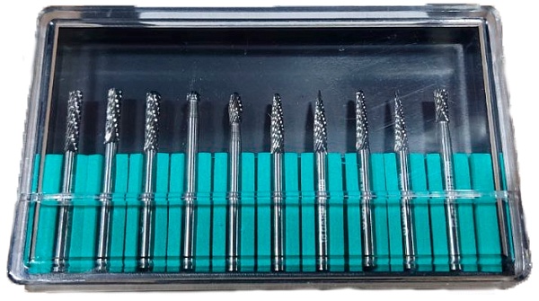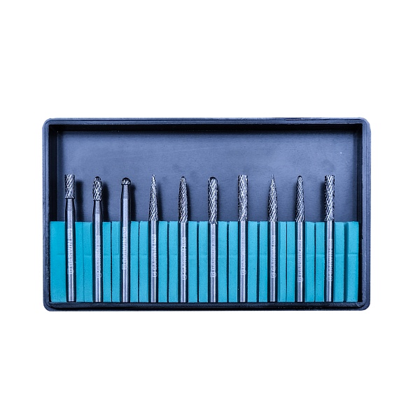Вольфрамо-кобальтовый сплав делает фрезу не слишком хрупкой и достаточно твердой. Благодаря этому, данный набор твердосплавных борфрез можно использовать как для черновой, так и для чистовой обработки материалов.