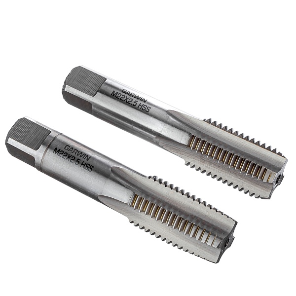 Метчики ручные M22x2.5, DIN 352, HSS, 6H, комплект из 2 штук GARWIN INDUSTRIAL для нарезания метрической резьбы в сквозных и глухих отверстиях заготовок из углеродистых и низколегированных сталей, а также других конструкционных