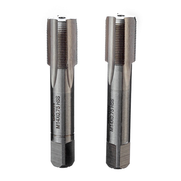 Метчики ручные Mf14x0.75, DIN 2181, HSS, 6H, комплект из 2 штук GARWIN INDUSTRIAL для нарезания метрической резьбы в сквозных и глухих отверстиях заготовок из углеродистых и низколегированных сталей, а также других конструкционных