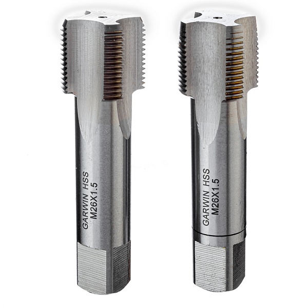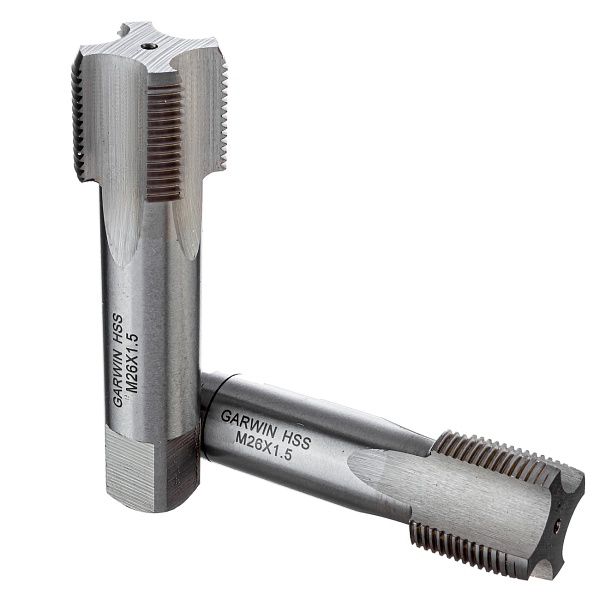 Метчики ручные Mf26x1.5, DIN 2181, HSS, 6H, комплект из 2 штук GARWIN INDUSTRIAL для нарезания метрической резьбы в сквозных и глухих отверстиях заготовок из углеродистых и низколегированных сталей, а также других конструкционных