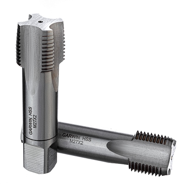 Метчики ручные Mf27x2.0, DIN 2181, HSS, 6H, комплект из 2 штук GARWIN INDUSTRIAL для нарезания метрической резьбы в сквозных и глухих отверстиях заготовок из углеродистых и низколегированных сталей, а также других конструкционных