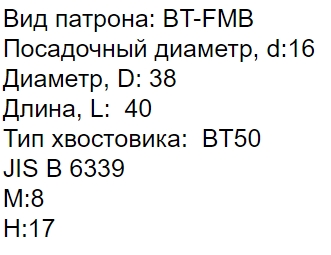 Оправка для насадной фрезы d16, A40 AD/B, BT50, JIS B 6339, GARWIN HT, BT50-FMB16-40