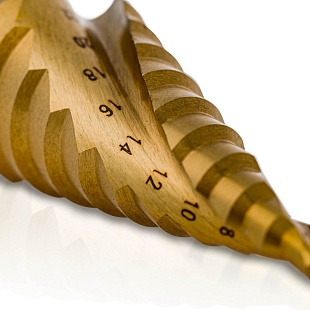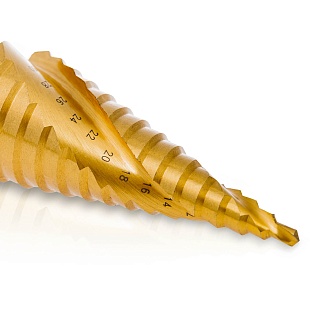 Сверло ступенчатое RUNTEC 4-22 мм, 10 ступеней, HSS-TiN, RT-DS4-22-10