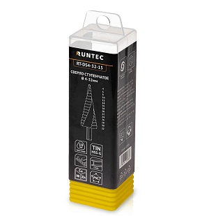 Сверло ступенчатое RUNTEC 4-32 мм, 15 ступеней, HSS-TiN, RT-DS4-32-15