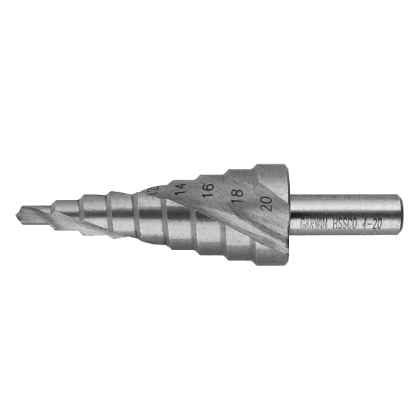 Сверло ступенчатое 4,0-20,0 мм, 9 ступеней, HSS-Co5, со спиральной канавкой, GARWIN INDUSTRIAL, 102580-4-20-9