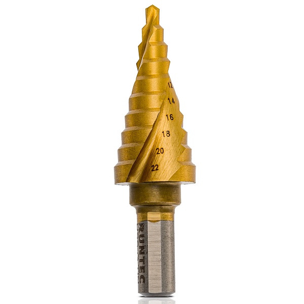 Сверло ступенчатое RUNTEC 4-22 мм, 10 ступеней, HSS-TiN, RT-DS4-22-10
