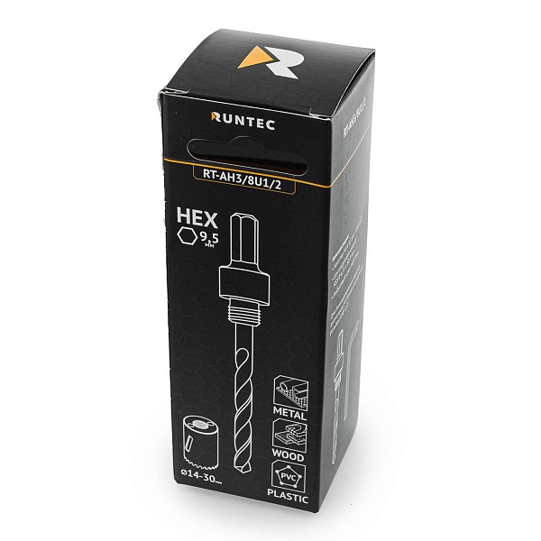 Адаптер для биметаллических коронок RUNTEC 14-30 мм, HEX 9,5 мм - UNF 1/2", RT-AH3/8U1/2