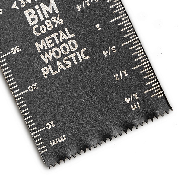 Зубья с волнистой разводкой и шагом 18 TPI (1.4 мм) обеспечивают точный рез большинства материалов. Материал пильного полотна из инструментальной стали с зубьями из быстрорежущей стали с содержанием кобальта 8% повышает рабочий ресурс и режущую способность насадки. Ширина — 34 мм.