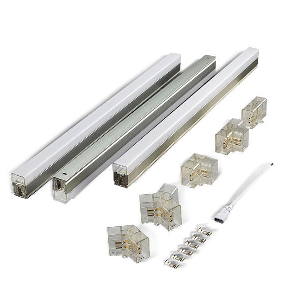 Модульная структура обеспечивает легкую сборку и монтаж. В комплекте все необходимое: лампы, коннекторы разных видов, шнур питания и скобы для крепления.