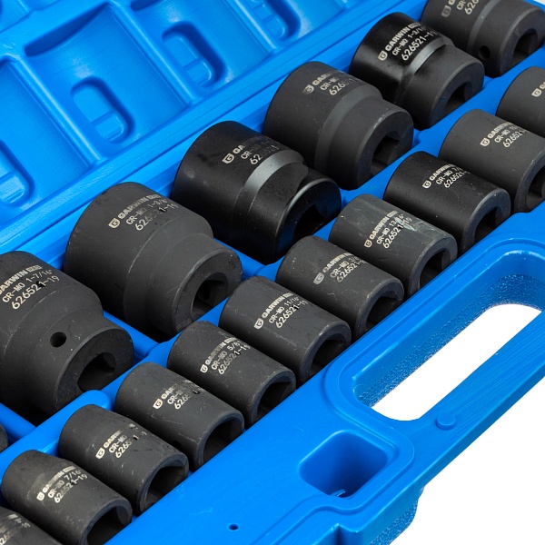 Набор ударных головок дюймовых 1/2", 38 мм, 19 пр., 3/8" - 1-1/2", GARWIN PRO, 626521-19