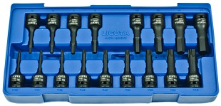 Тип и размеры головок - шестигранники от 12 до 32 мм. Размер привода — ½ дюйма (12,7 мм). Комплект из 11 предметов поставляется в пластиковом ложементе.