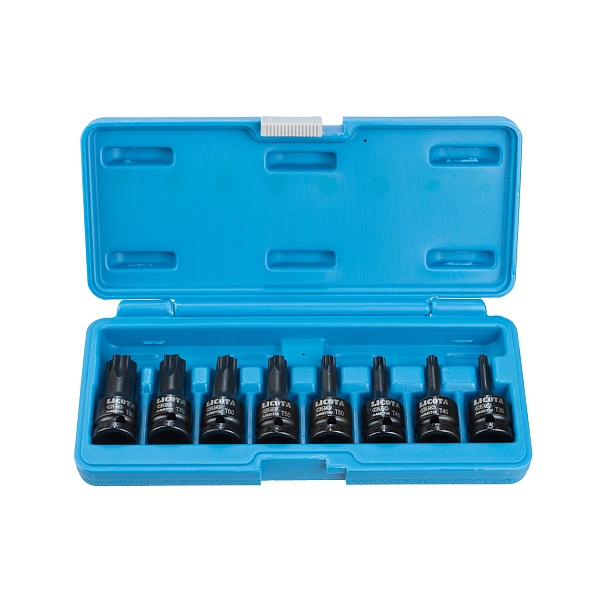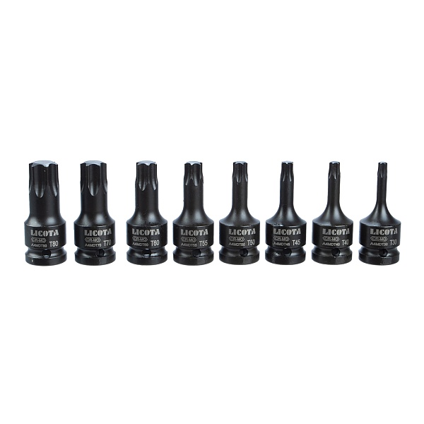 Набор TORX ударных в кейсе 1/2" T30, T40, T45, T50, T55, T60, T70, T80 мм 8 пр, длина 60 мм, Licota, ASA-40002S