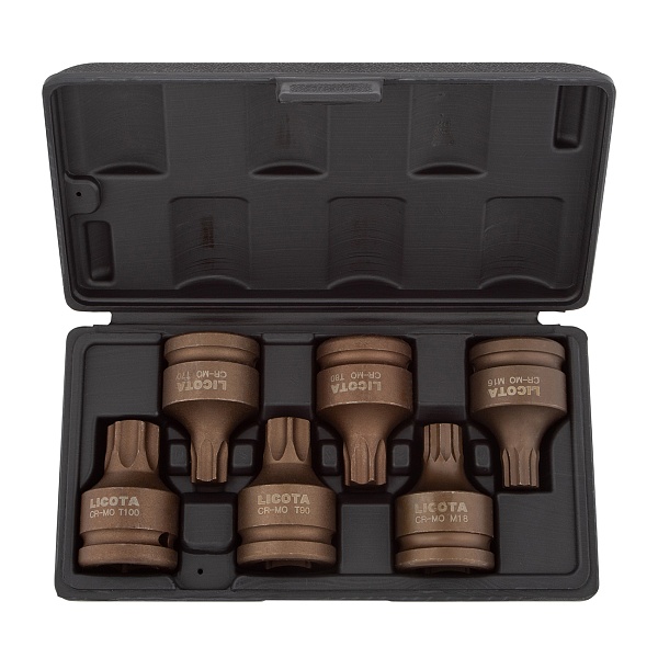 Набор ударных головок 3/4", T70-T100, M16, M18, 6пр., Licota, ASA-80009