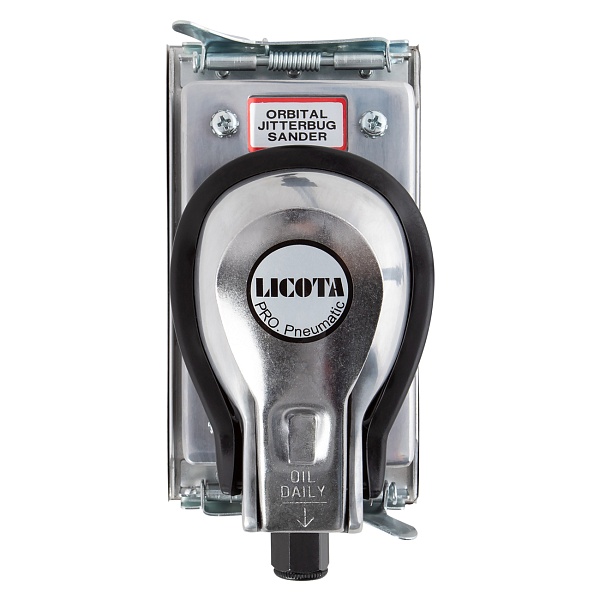 Плоскошлифовальная машинка по дереву пневматическая Licota PAS-20006 в металлическом корпусе с рычажным включателем. Подошва для плоскошлифовальной машинки с рабочей площадью подошвы - 175 кв.см.