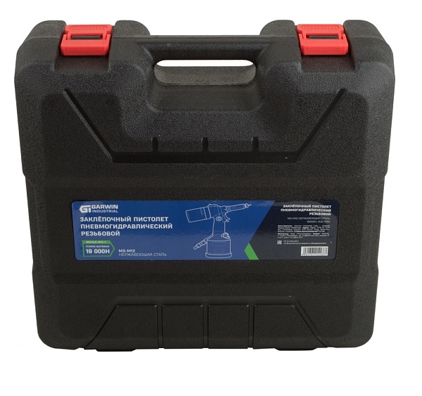 Заклепочный пистолет пневмогидравлический резьбовой; M3-M12 нерж. сталь; 19000Н; ход 7мм, GARWIN INDUSTRIAL, 804540-M12-7