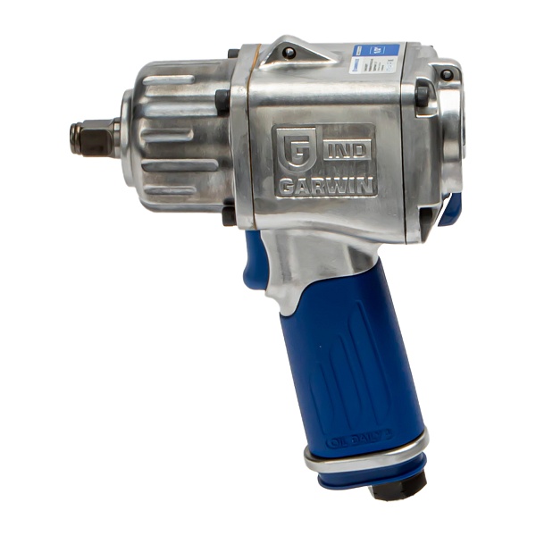 Гайковерт пневматический ударный усиленный GARWIN INDUSTRIAL 800527-12-1356 в металлическом корпусе с ударным механизмом Twin Hammer. Используется для откручивания болтового крепежа различных промышленных конструкций, узлов автомобиля (двигателя, ходовой части, подвески), коммерческого шиномонтажа.