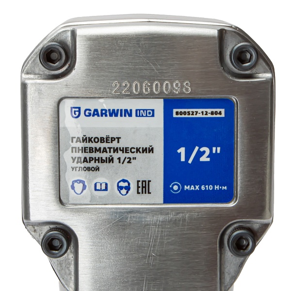 Гайковерт пневматический ударный 1/2" 610 Нм (62 кГм), угловой, GARWIN INDUSTRIAL, 800527-12-804