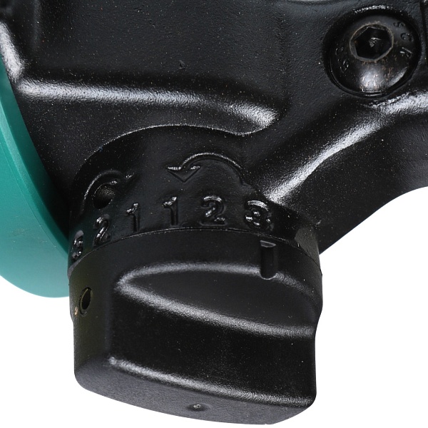 Переключатель скоростей расположен в нижней части рукоятки. Шесть режимов работы (3 на закручивание и 3 на откручивание) обеспечивают комфортную работу с резьбовыми соединениями любых размеров.