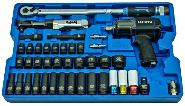 Набор с гайковертом, пневмотрещоткой, ударными головками и динамометрическим ключом, Licota, ACK-B1001