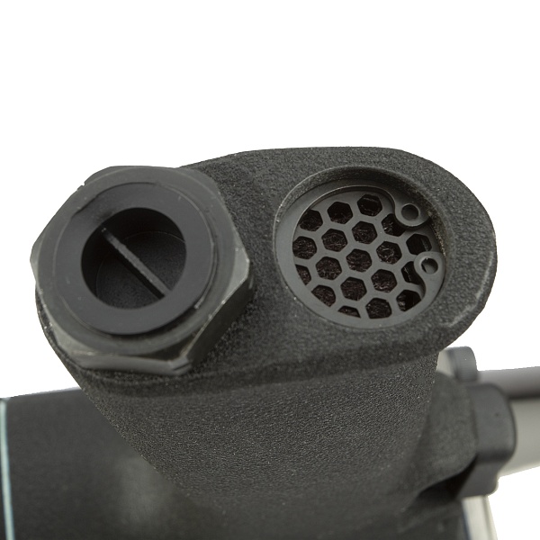 Вывод воздуха осуществляется через глушитель, который находится в нижней части рукоятки. Глушитель дает возможность изменить направление выхода воздуха в любом направлении на 360°. Кронштейн под подвес на корпусе позволяет подвесить инструмент над конвейерной лентой или на страховочном ремне при высотных работах, что освобождает обе руки оператора, когда работа с крепежом закончена.