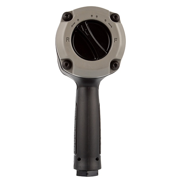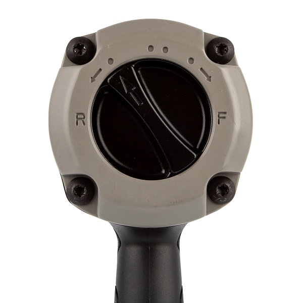 Переключатель скоростей расположен в задней части корпуса. Четыре режима работы (3 на закручивание и 1 на откручивание) обеспечивают комфортную работу с резьбовыми соединениями разных размеров.