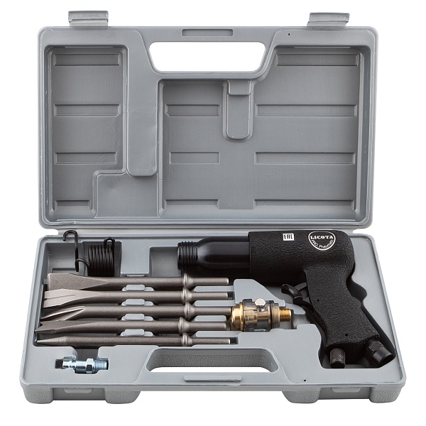 Пневматический молоток в комплекте с зубилами в кейсе 10пр., Энерг. уд. 7,2Дж, Licota, PAH-20002RK