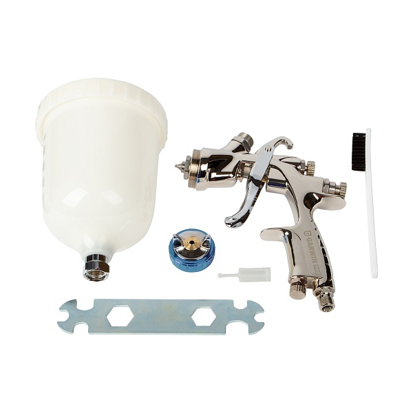 Технология нанесения ЛКП - HVLP. Размер дюзы - 1,4 мм. Емкость бачка - 0,6 л.