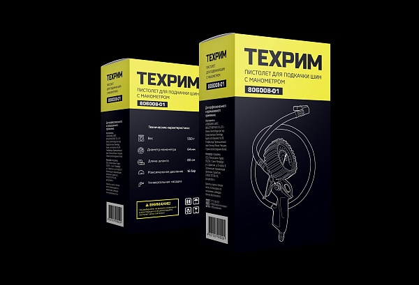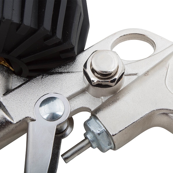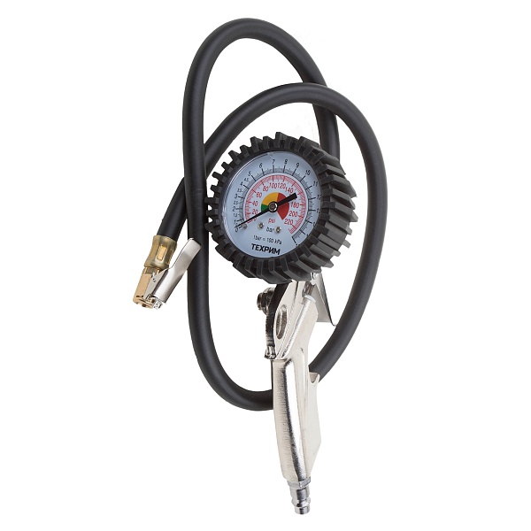 Пистолет для накачки шин ТЕХРИМ 806008-01 с универсальной насадкой и механическим манометром для контроля давления.