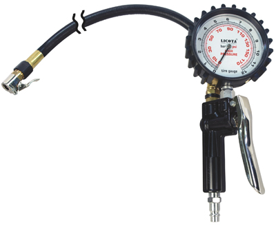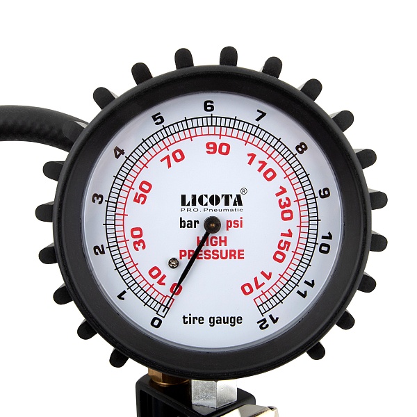 Подкачка шин Licota PAP-D057-4 с механическим манометром для контроля давления и удлиненным шлангом.