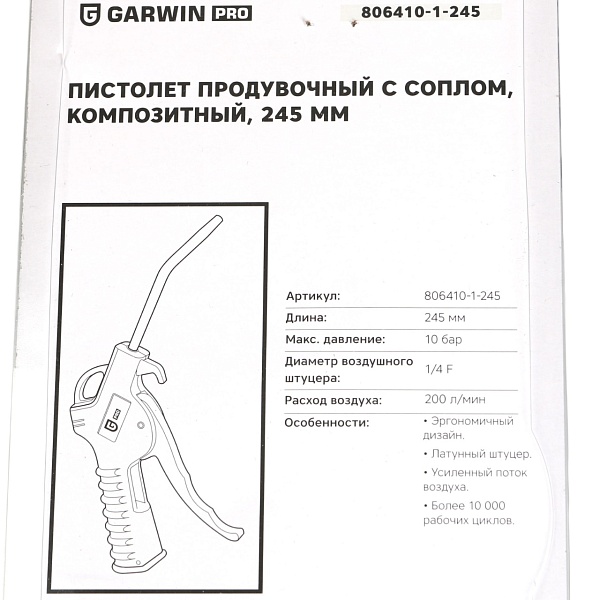 Пистолет продувочный композитный, с соплом, 245 мм, GARWIN PRO, 806410-1-245