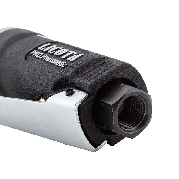 Корпус пневмотрещотки выполнен из алюминия. Малый размер — 165 мм и вес — 0,5 кг позволяют оператору работать с крепежом в труднодоступных местах.