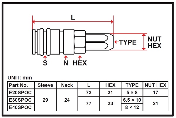 Пневморазъем быстросъемный композитный Licota E20SPOC для быстрого и герметичного соединения элементов пневмолинии.