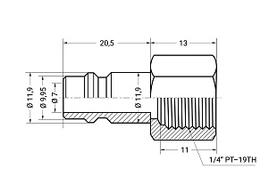 Соединение: внутренняя резьба размером 1/4" - разъем "папа".