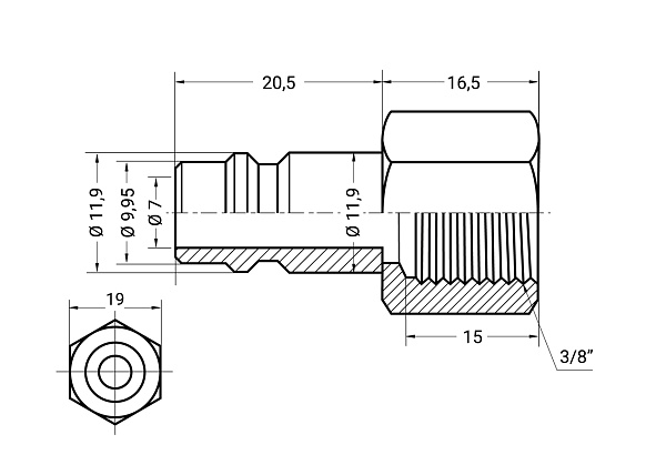 Соединение: внутренняя резьба размером 3/8" - разъем "папа".