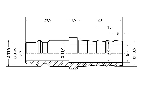 Соединение: разъем "папа" - штуцер "елка" с внешним диаметром 10 мм.