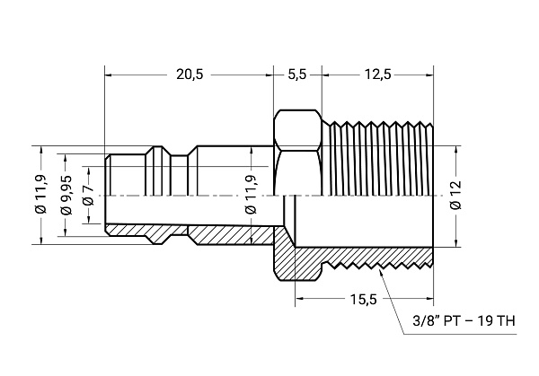 Пневморазъем быстросъемный металлический Licota 030PM для быстрого и герметичного соединения элементов пневмолинии.
