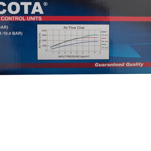 Максимальное рабочее давление - 10,2 бар. Диапазон регулировки давления - 1-10,2 бар. Пропускная способность - 1750 л/мин. Объем колбы - 80 см³. Внутренняя резьба - ¼ дюйма.
