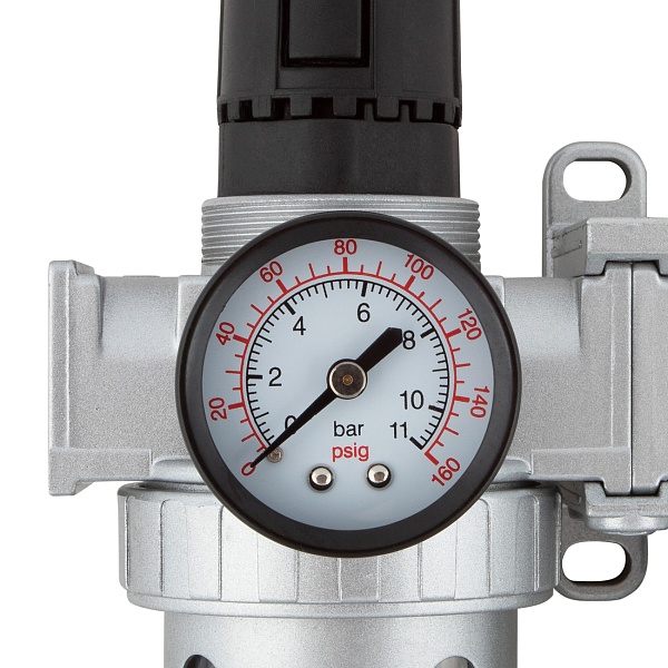 Точная регулировка подачи масла в пневмолинию и давления воздуха. Манометр с двумя вариантами шкалы (PSI и бар) дает работать с разными стандартами измерения давления. Регулятор подачи масла позволяет точно дозировать необходимое количество смазки.