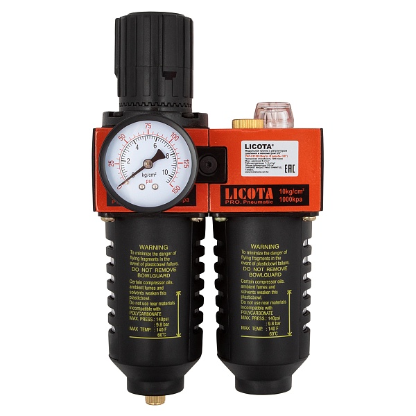 Модульная группа для подготовки воздуха с регулятором давления и манометром, 3/8", усиленная, Licota, PAP-C615B